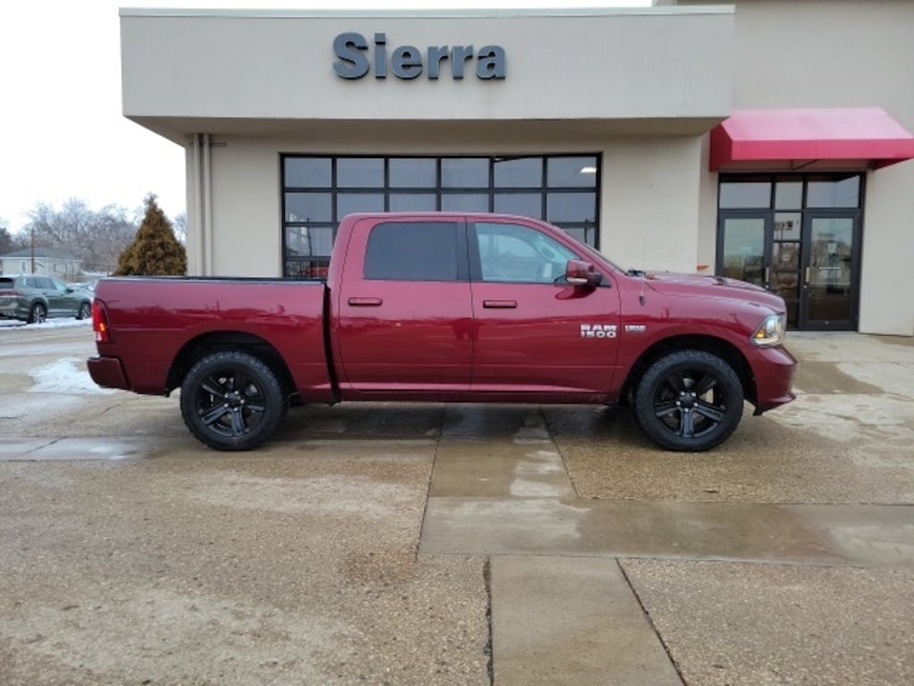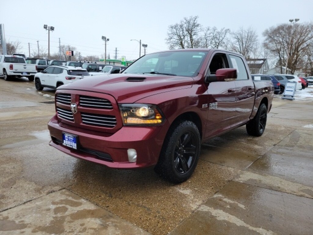 Delmonico Red Pearlcoat 2017 Ram 1500 4D Crew Cab Sport HEMI 5.7L V8 Multi Displacement VVT 15/21 City/Highway MPG 8-Speed Automatic 4WD